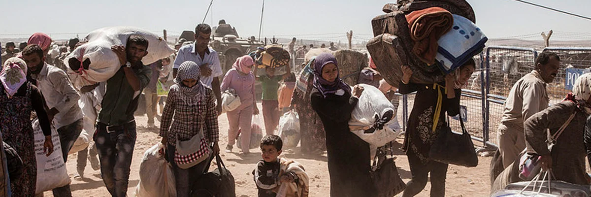 Syrian Kurdish refugees cross into Turkey from Syria, near the town of Kobani. ©UNHCR / I. Prickett