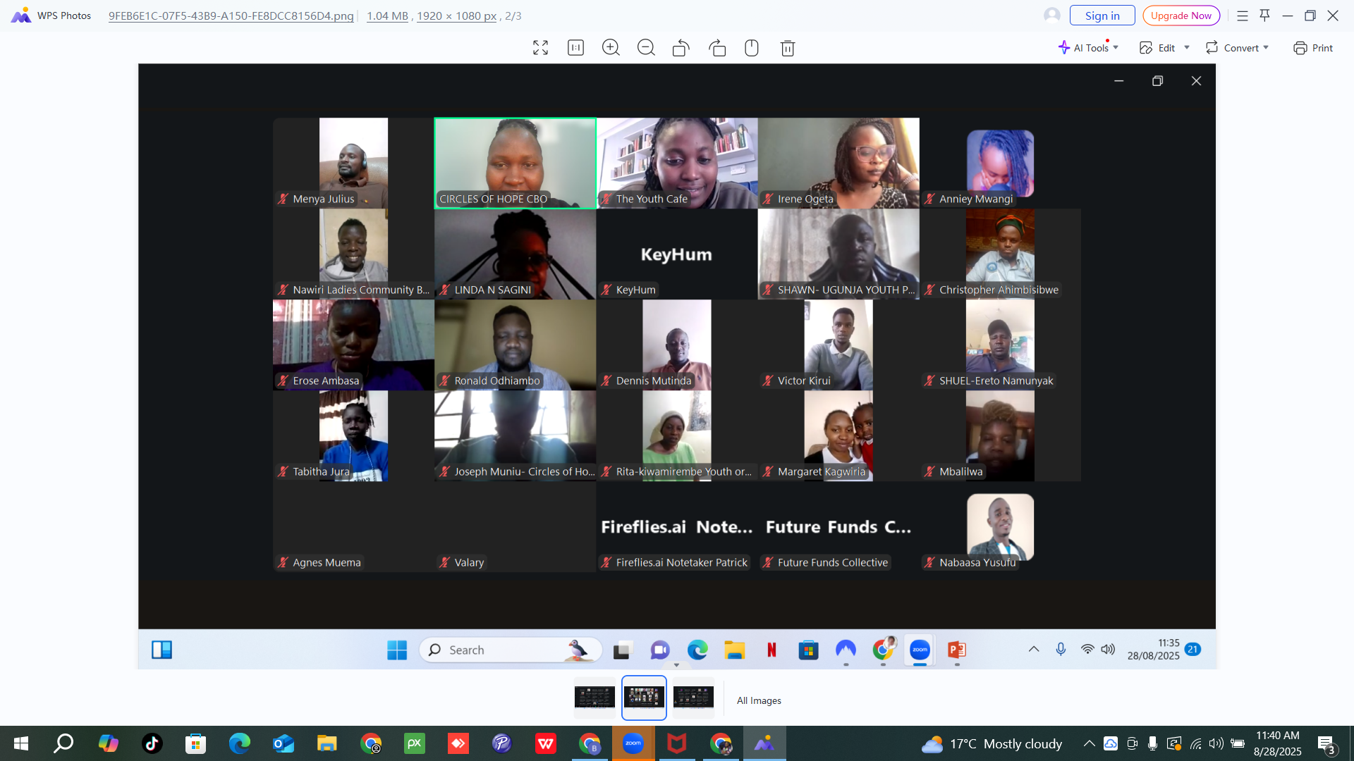 Esther Nora (The Youth Café) and Hellen Bhoke (Circles of Hope) welcomed participants, emphasizing the power of collaboration and peer learning. Hellen encouraged participants to use the chat for introductions and fill out a shared networking form to support post-forum linkages.