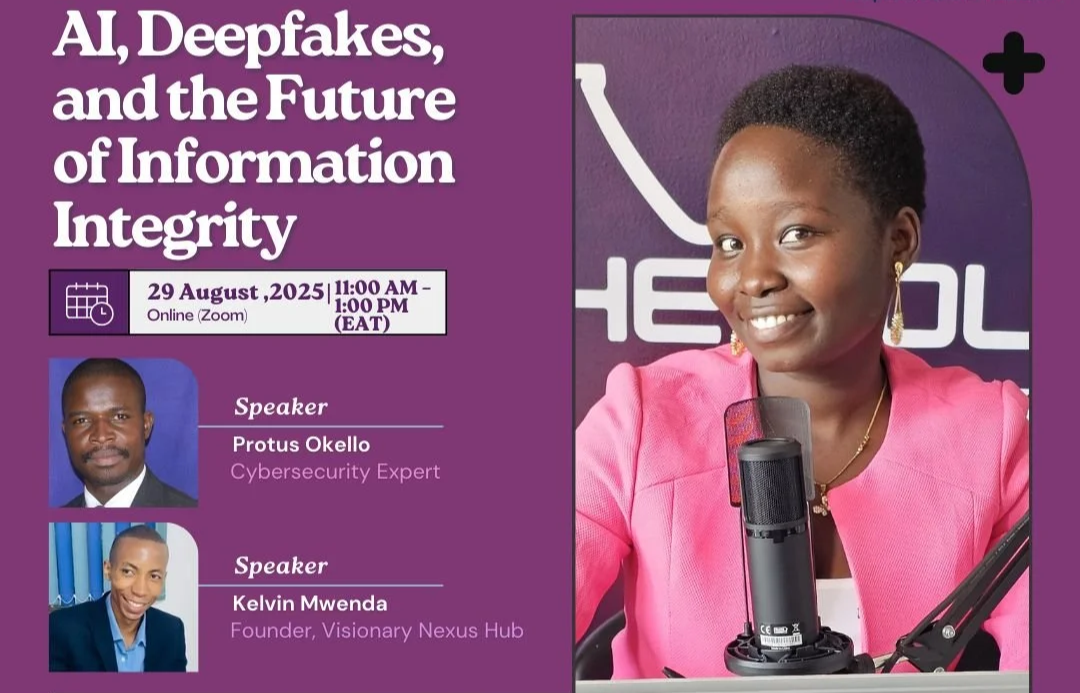 In an age where technology is advancing at an unprecedented pace, our ability to distinguish between truth and fiction is being tested like never before. On Friday, August 29, 2025, The Youth Café hosted a timely and critical webinar titled “AI, Deepfakes, and the Future of Information Integrity” from 11 a.m. to 1 p.m. The session, which was moderated by Shirley Jemeli, brought together a diverse group of participants, including tech professionals, fact-checkers, journalists, electoral bodies, civic educators, and youth leaders, along with speakers Kelvin Mwenda from Visionary Nexus Hub and Protus D. Okello, to address this critical challenge.